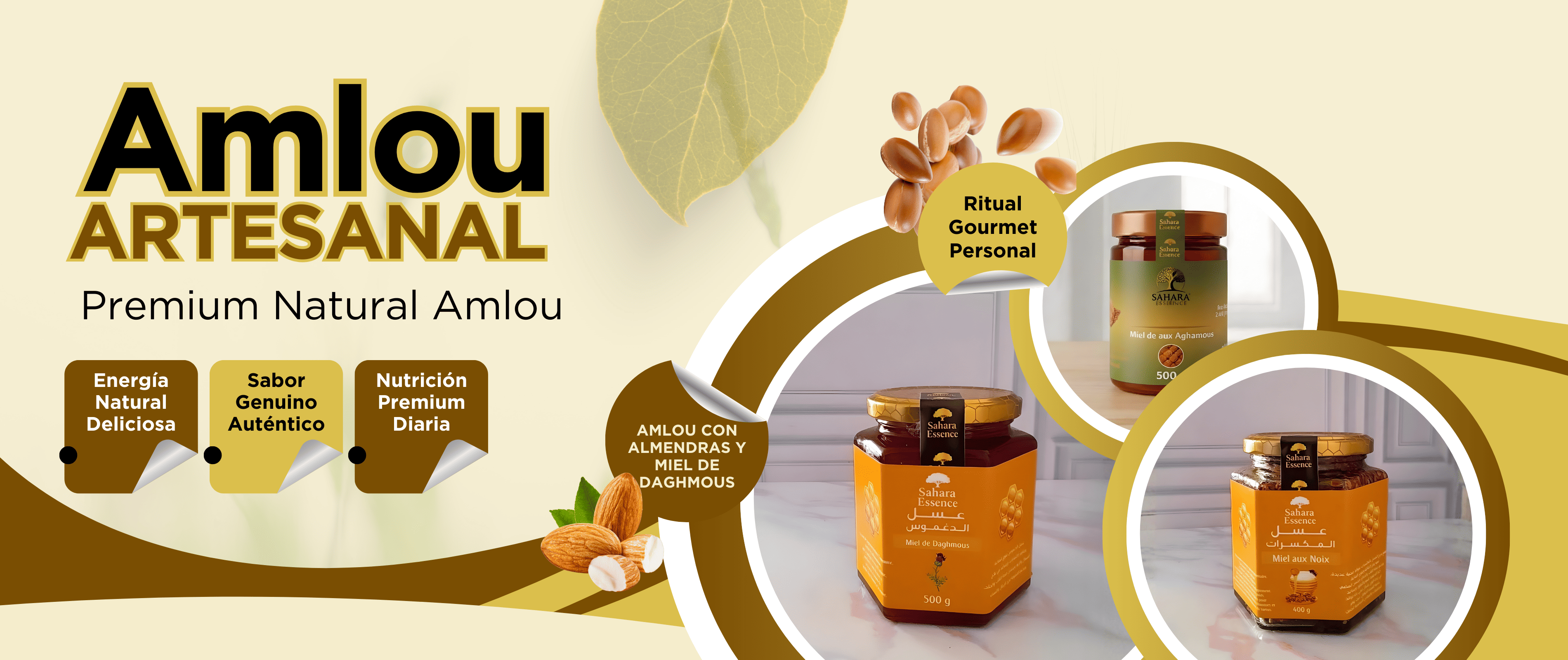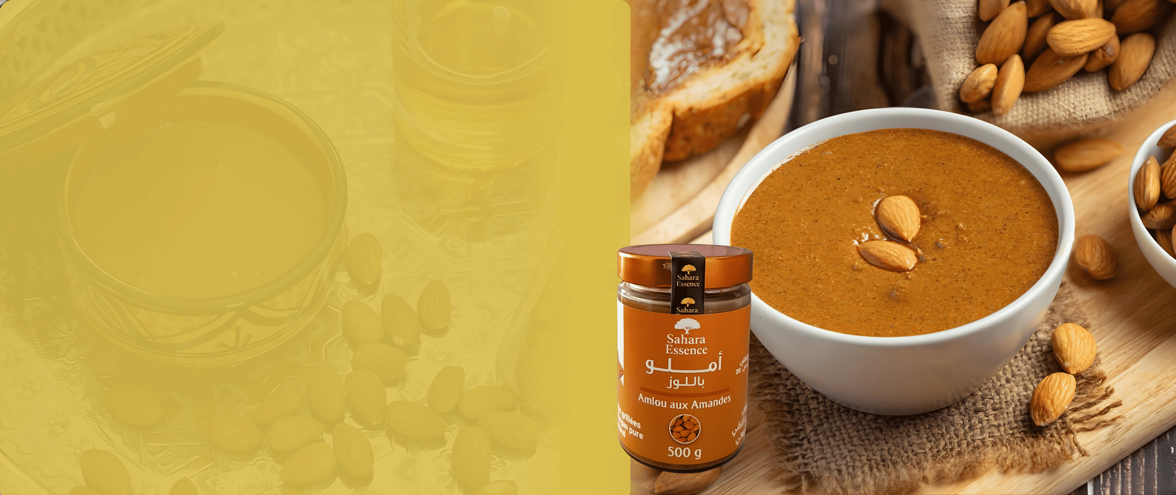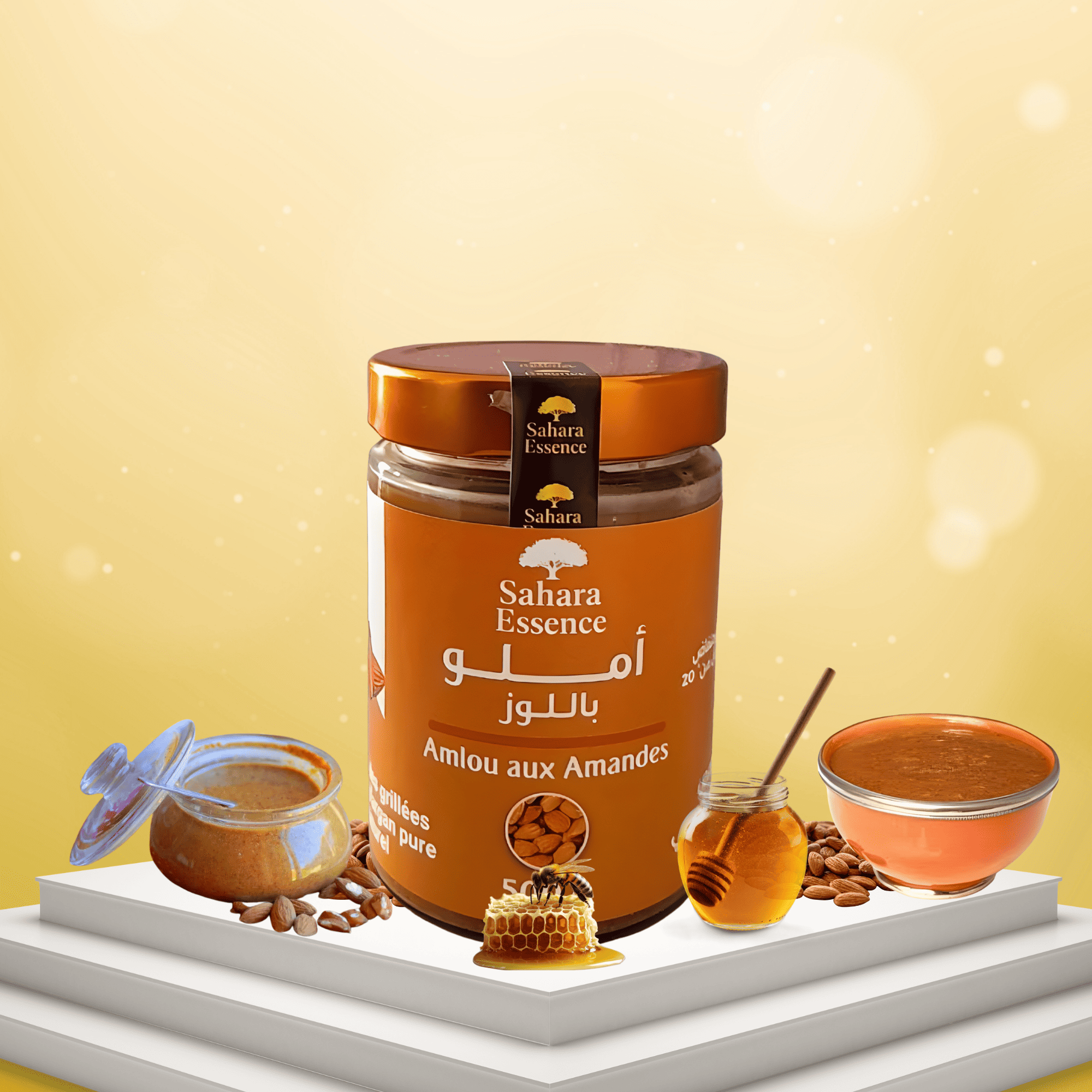 En Sahara Essence®, Amlou y miel se unen para ofrecer una experiencia auténtica y nutritiva. Desde el desayuno hasta el snack, cada cucharada aporta equilibrio, energía y el lujo de ingredientes puros y tradicionales.