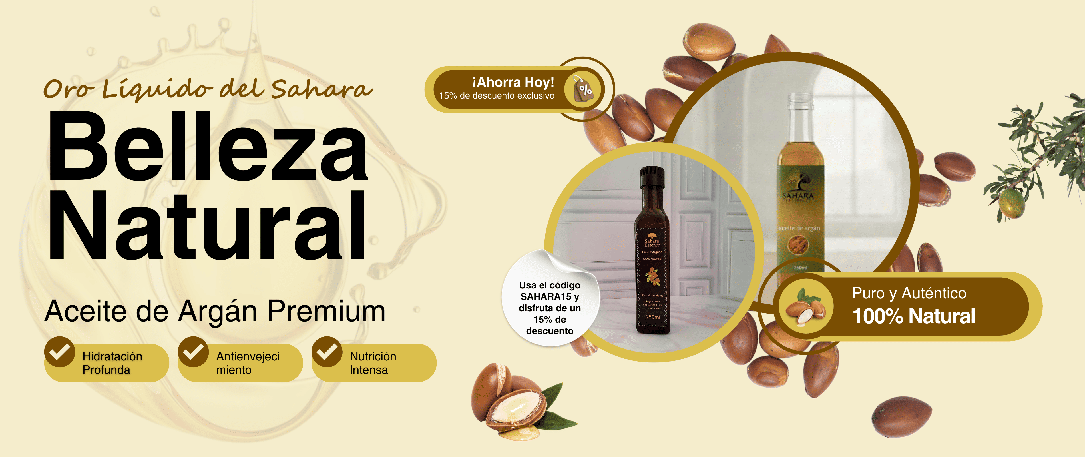 Desde el corazón del desierto nace Sahara Essence®. Aceite de argán 100% natural, miel de daghmous pura y recetas artesanales transmitidas durante generaciones. Cada gota, cada cucharada, es una experiencia de lujo auténtico, pensada para tu bienestar diario.